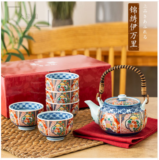 일본 전통 아리타 이마리 도자기 6인용 찻잔 6잔+찻주전자 세트 고급스러운 선물 찻집 소품