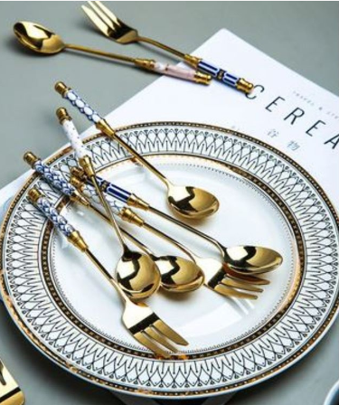 [대호원] 홈카페 티스푼 디저트 포크 스푼 수저 북유럽 엔틱 러시아 황실 골드 집들이 해외선물